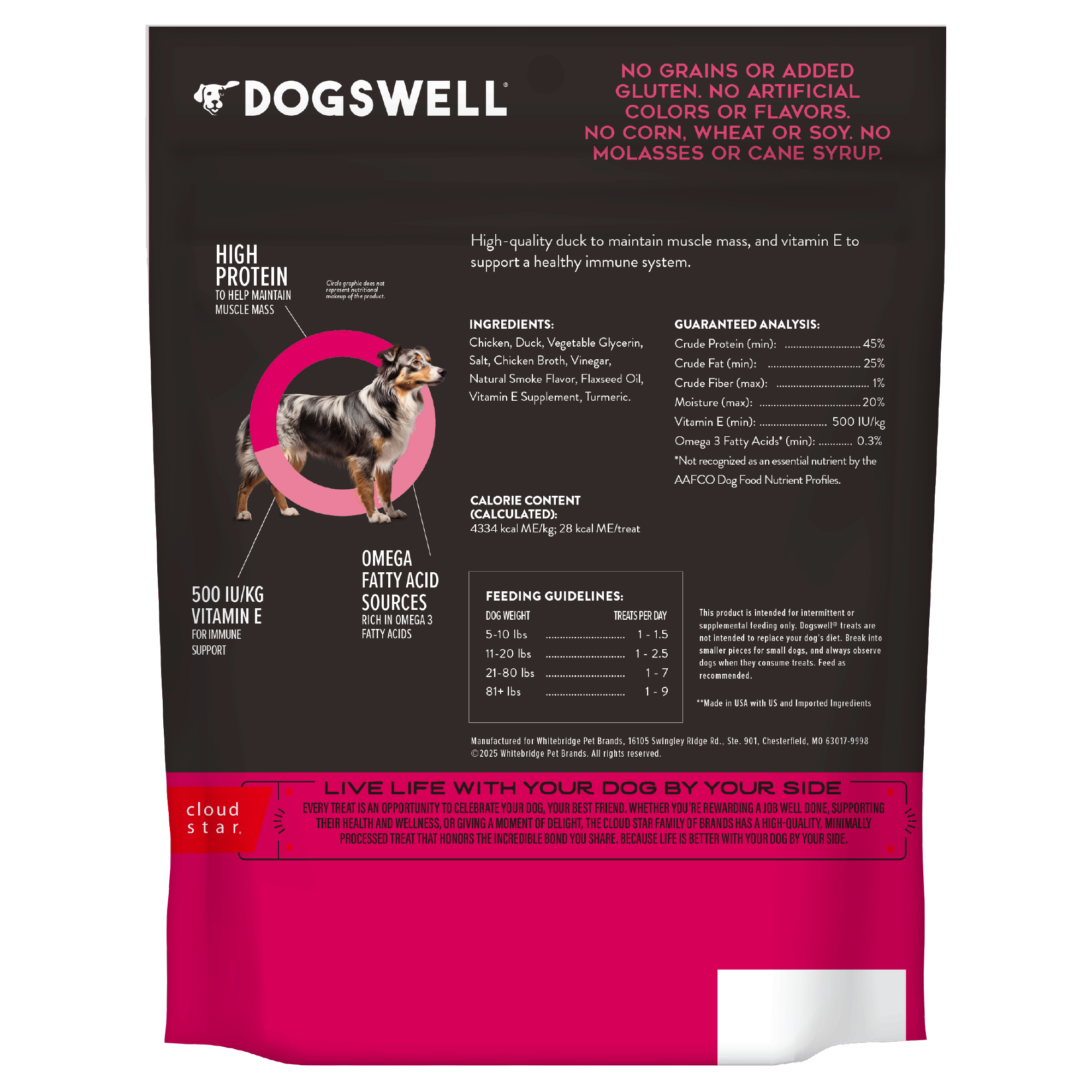 This product is intended for supplemental or intermittent feeding only. Dogswell® treats are not intended to replace your dog’s diet. Break into smaller pieces for small dogs, and always observe your dogs when they consume treats.